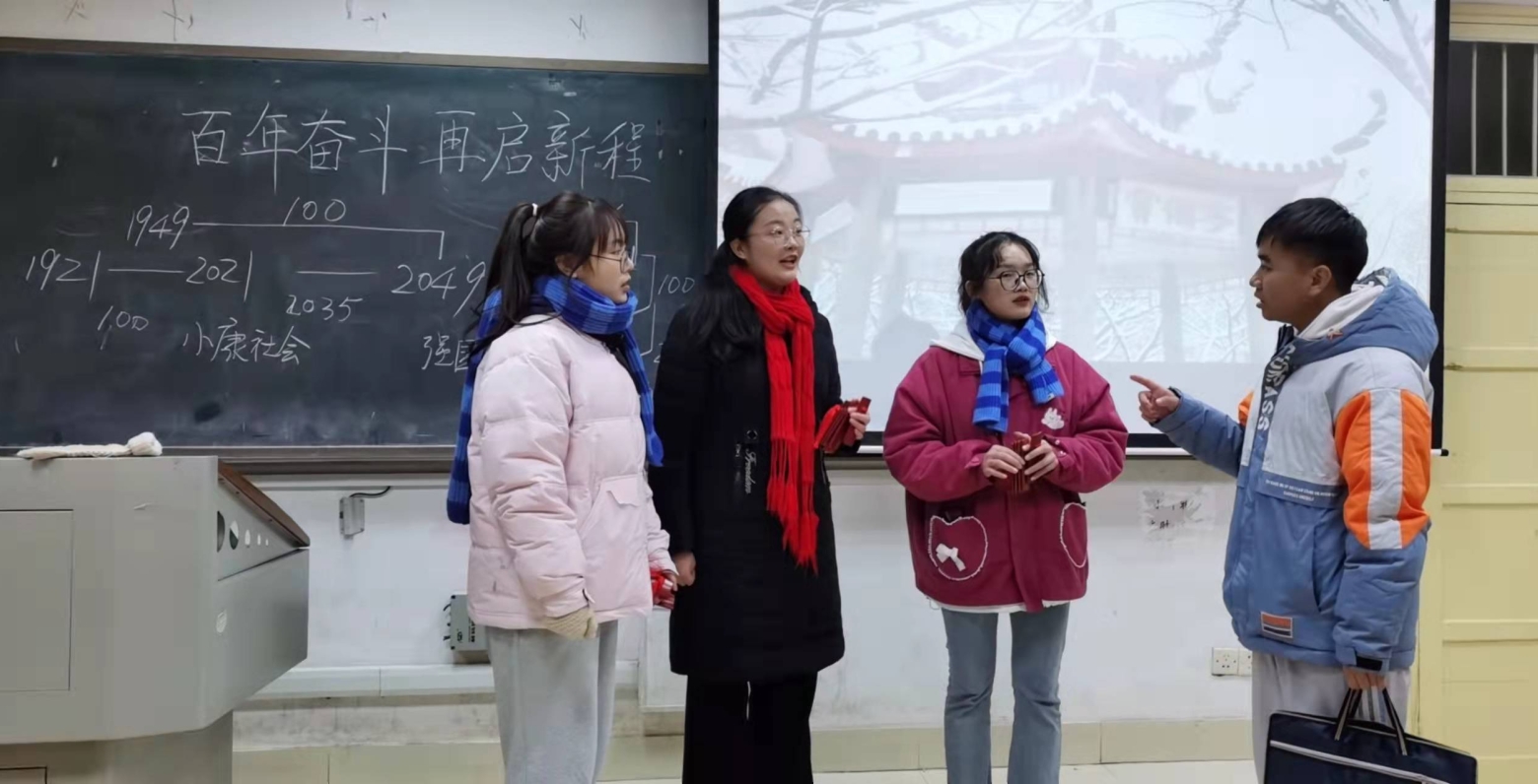 课堂上,唐佳海老师从《可爱的中国》电视剧中革命先辈方志敏的梦想谈起,探讨了中国梦的深刻内涵,对党的百年奋斗历程及其重大成就分开天辟地、改天换地、翻天覆地、惊天动地四个阶段进行了概括,并从坚持党的领导、坚持人民之上、坚持理论创新等十个方面与同学们深入学习探讨了百年奋斗的历史经验。接下来,思政快板宣讲小组成员杨超等六位同学以情景剧《青春之问》回答了新时代新征程上青年员工如何围绕第二个百年奋斗目标走好新的赶考之路的问题。生动活泼的剧情表演、朗朗上口的快板讲述,赢得了同学们阵阵热烈掌声。