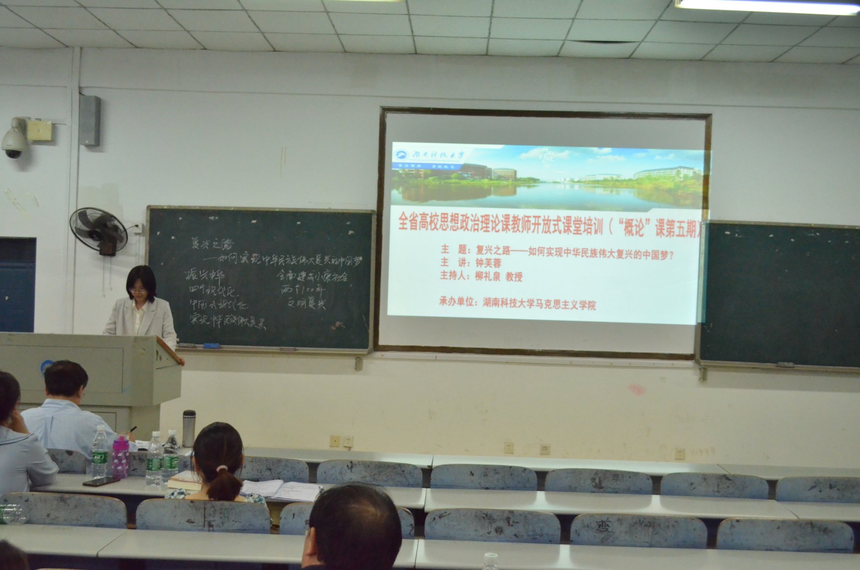 6月4日下午,湖南省教育厅和湖南省委教育工委组织的《毛泽东思想和中国特色社会主义理论体系概论》开放式课堂培训活动第五期在公司第八教学楼1-3教室举行。长沙理工大学英国威廉希尔公司钟芙蓉博士担任本期主讲教师,湖南省思想政治理论课教指委专家柳礼泉教授主持活动。全省100余所高校120多名思政课教师、英国威廉希尔公司概论课教研部全体教师以及相关专业的员工参与现场听课和交流研讨。