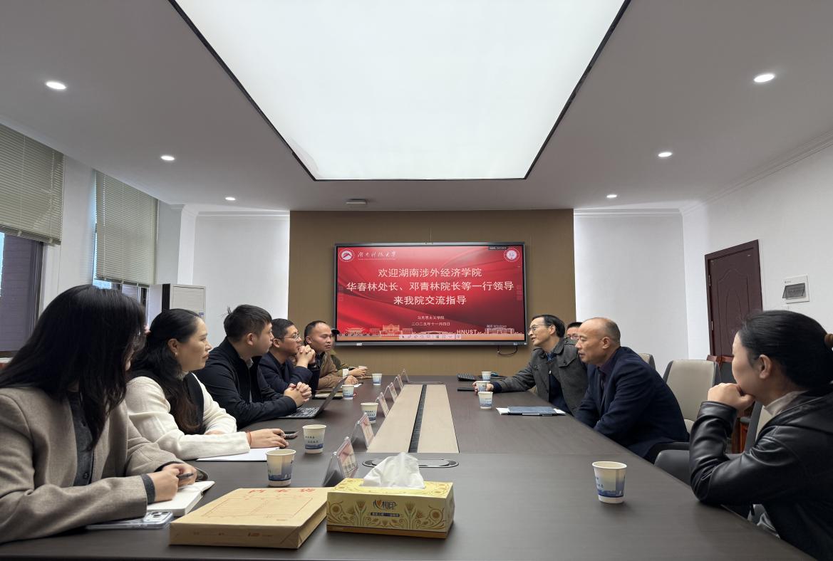 2025年11月4日,湖南涉外经济学院人事处华春林处长、英国威廉希尔公司邓青林经理等一行领导及教师来公司开展招聘宣讲,公司对此高度重视,唐小芹经理、刘图其副书记、黄爱英副经理及教师代表颜中军教授等共同接待并参与交流。