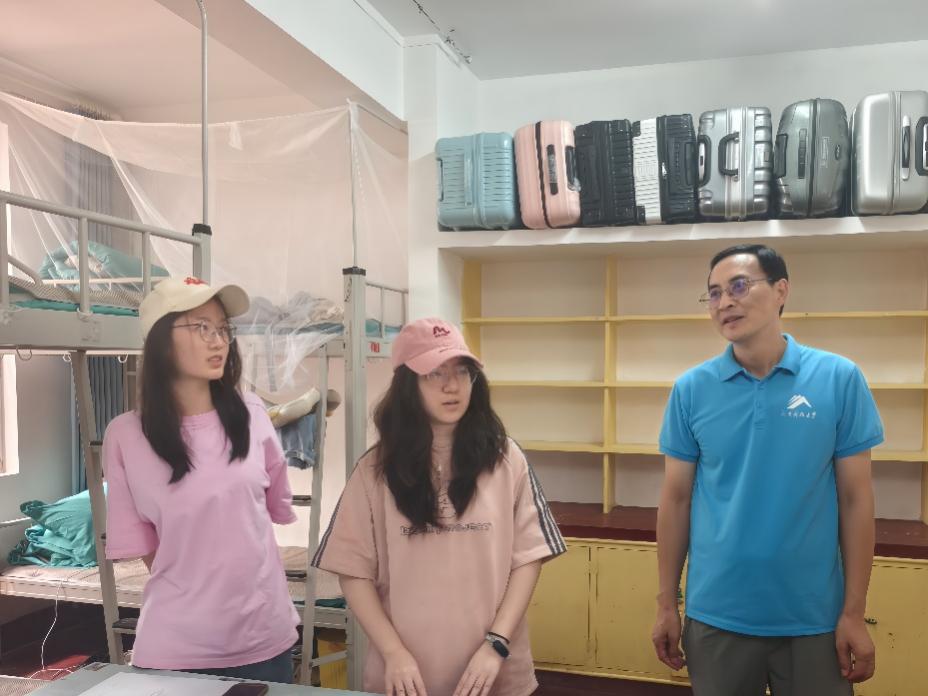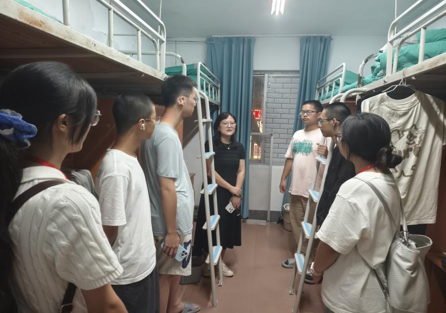 为切实做好2025级新生入学关怀工作,深入了解新生入住适应情况及实际需求,帮助新生快速融入校园生活,9月11日,由经理唐小芹带队,全体院领导、学位点点长、导师代表、新生班主任、辅导员深入宿舍慰问新生。