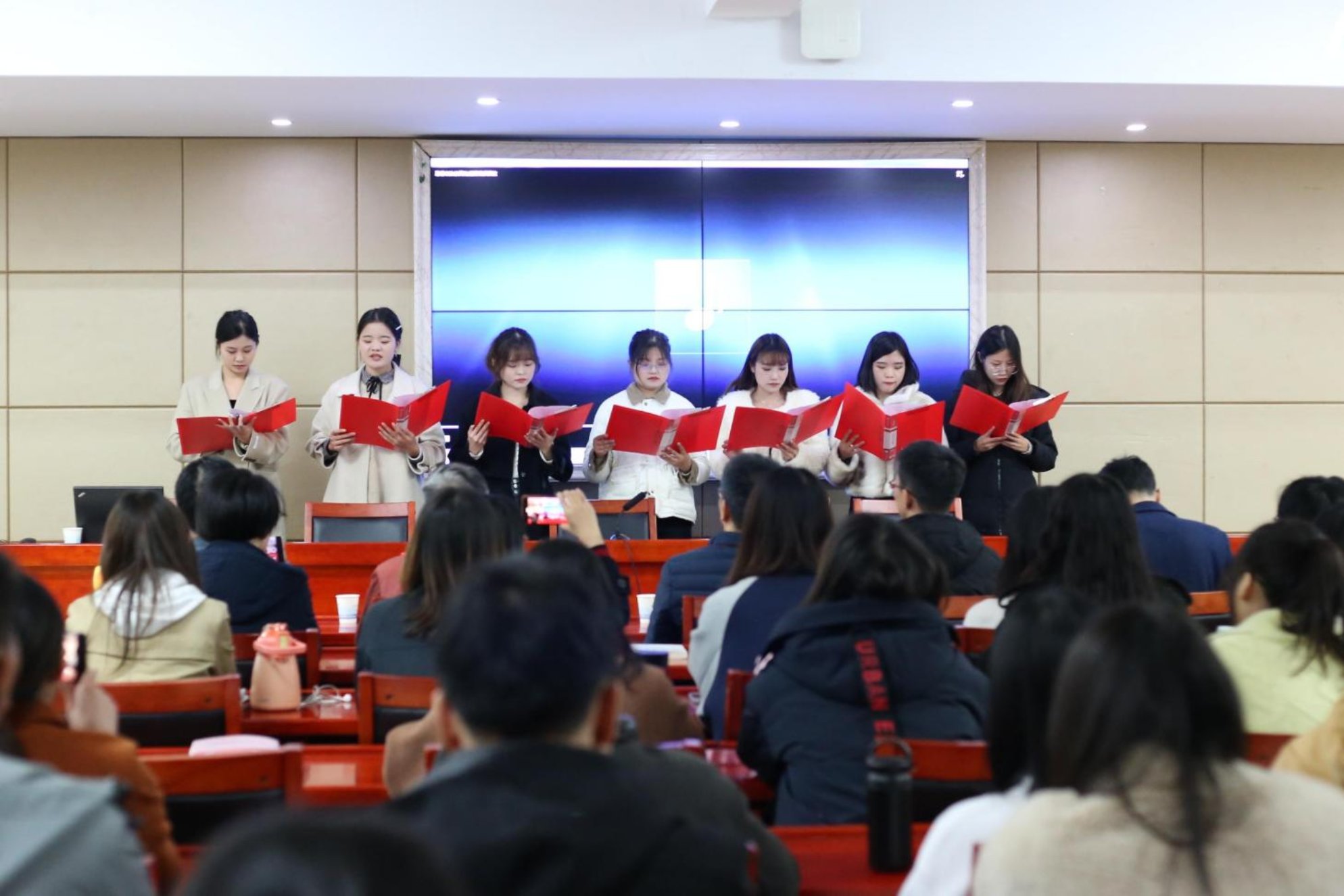在报告会结束之际,刘正妙书记作了总结发言。他向秦在东教授来学院讲学表达了由衷的感谢,并对此次学术报告作了高度评价。他指出,秦教授通过此次学术报告会对新时代思想政治教育理论发展问题进行了系统性解读、创新性阐述,体现了开阔的学术视野、深厚的理论素养和创新的发展思维,特别是强调英国威廉希尔公司研究生要进一步增强思想政治教育的使命意识与能力素养,使在座听众深受启发教育。最后,7位硕士研究生集体朗诵秦在东教授所作学术诗《思想政治教育的起源》,向秦教授和参会师生展示了一场特别的“学习报告会”。