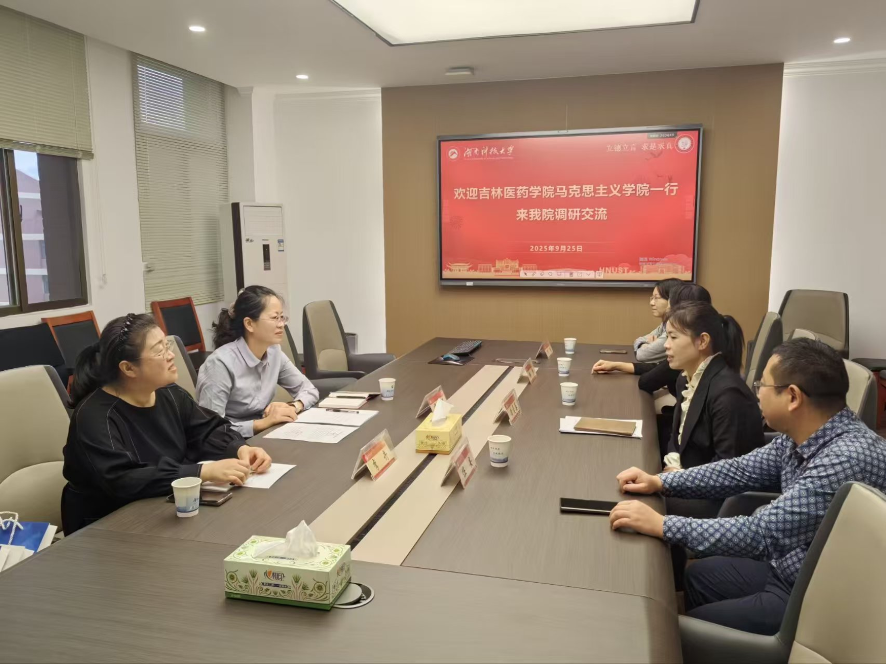 9月25日,吉林医药学院英国威廉希尔公司副经理尹艳辉、督导专家李卉教授来公司交流。公司副经理黄爱英、部分系主任参加本次交流会。此次来访交流旨在加强两校英国威廉希尔公司之间的学术合作与经验分享,共同推动英国威廉希尔公司团队建设、人才队伍建设及思想政治理论课教学改革等。