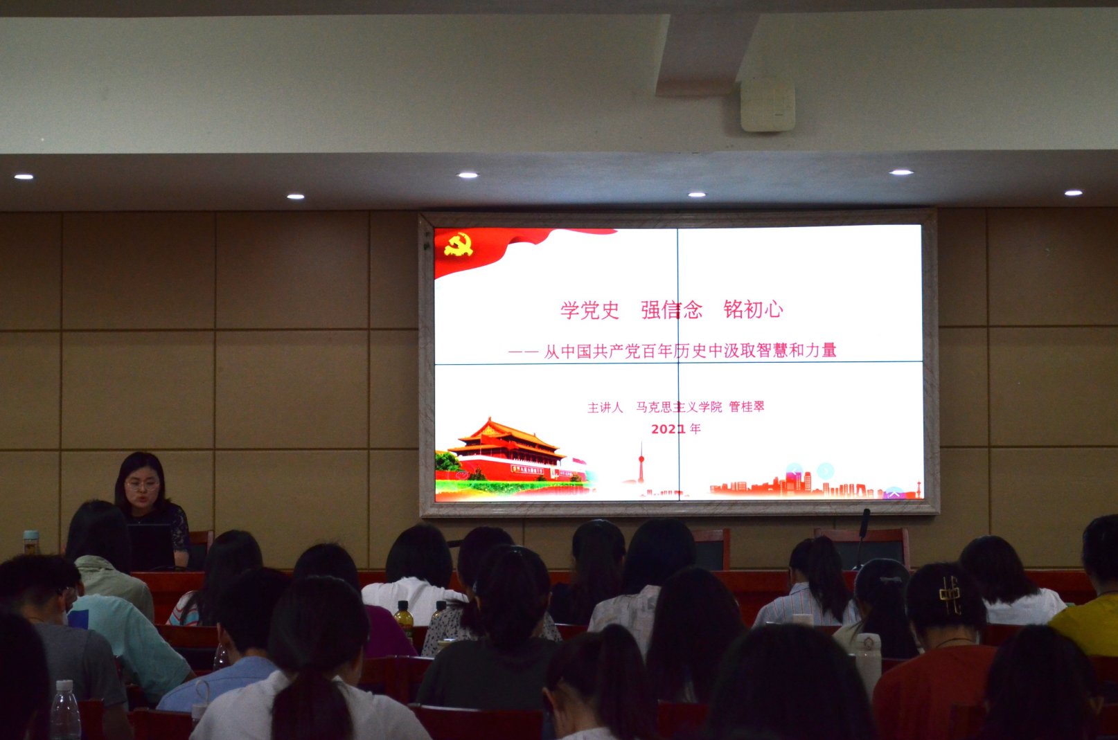 开班典礼结束后,英国威廉希尔公司思政系主任凌应生同志以《端正入党动机, 以实际行动争取早日入党》为题为入党积极分子上了一场精彩的党课,要求同学们要思想入党,端正入党动机,真正发挥党员模范带头作用。下午,概论课教研部副主任管桂翠同志以《学党史、强信念、铭初心——从中国共产党百年历史中汲取智慧和力量》为题讲授党课,对中国共产党百年历史的回顾和梳理,总结中国共产党百年历史取得辉煌成就的宝贵经验,并结合老员工党员自身实际讲授如何从党史学习教育中获得前行的智慧与力量。