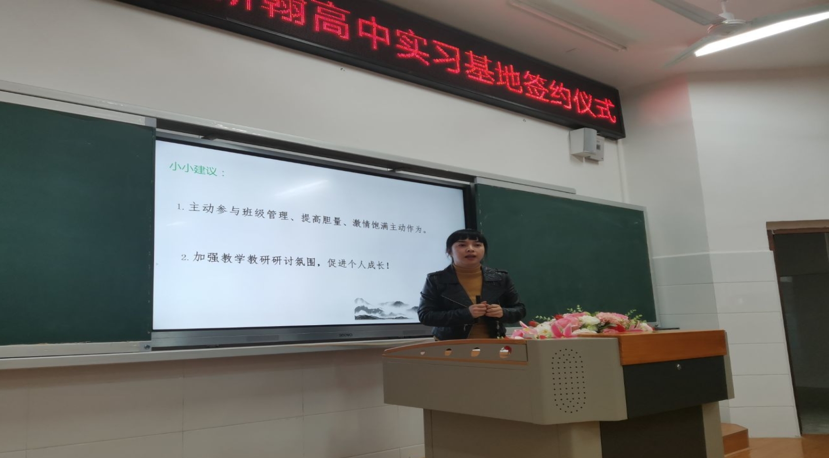 10月23日下午,公司党委书记廖加林教授、副经理黄爱英博士、思政系主任凌应生博士一行等8人来到浏阳市新翰高级中学实习点进行教育实习中期检查并出席实习基地签约仪式。