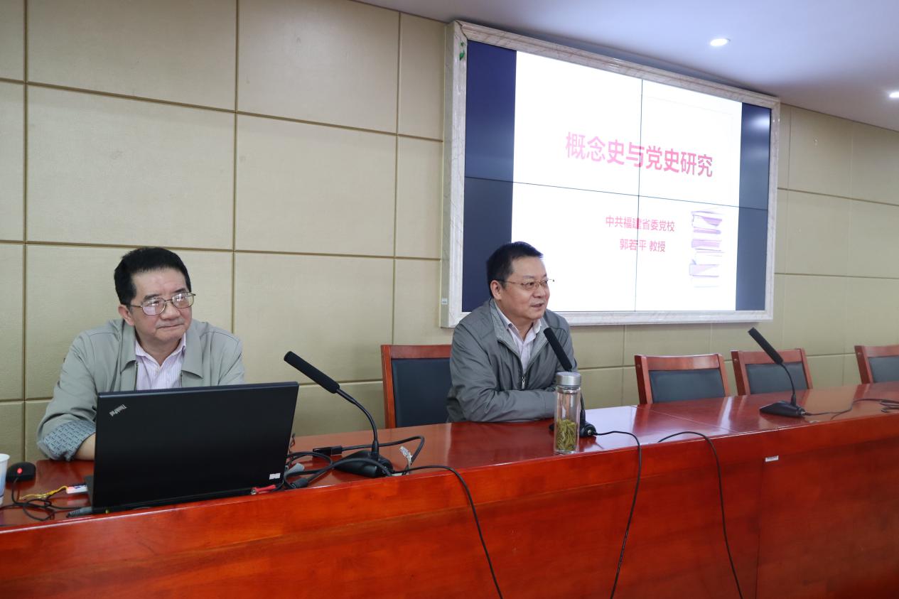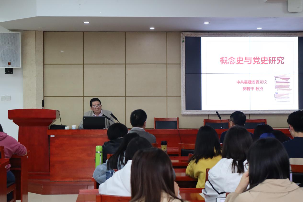 10月31日下午,中共福建省委党校福建行政学院郭若平教授应邀在学院立言楼5-1开展了主题为“概念史与党史研究”的学术讲座。此次讲座由学院经理吴怀友教授主持,部分教师代表以及全体硕博研究生参会。