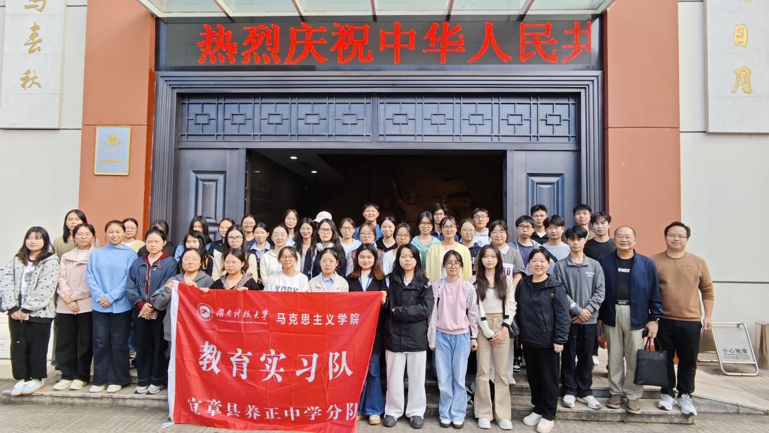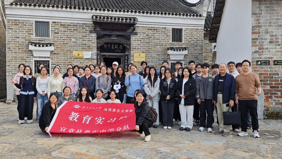 宜章县红色文化资源非常丰富,是革命传统教育和思政课教学不可多得的大课堂。二十届四中全会召开公报指出,新时期要“发展具有强大思想引领力、精神凝聚力、价值感召力、国际影响力的新时代中国特色社会主义文化,”红色文化资源进教材、进课堂、进头脑是增强思政课引领力的必要举措。此次红色之旅,通过在湘南年关暴动纪念馆和指挥部旧址、邓中夏故居的沉浸式学习,实习队师生深刻感悟革命先辈坚定执着追理想、实事求是闯新路的崇高精神,增强了传承红色基因、担当育人使命的历史自觉。同时,本次活动采取实地探访、现场教学与互动研讨等教学形式,在将“思政小课堂”与“社会大课堂”有机结合,将地方红色文化资源有效转化为鲜活教学素材、深入挖掘湘南红色文化资源育人价值等方面做出了有益尝试。实习队师生一致认为,本次活动提高了自身作为思政课教师的政治素养与教学实践能力,决心将实践学习的收获融入今后的教员工涯,让红色精神在新时代的思政课堂上绽放光芒,不断提升思政课实效性。